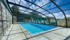 Since the garden is on a slope, Mr. K. chose the DALLAS ON THE WALL type of enclosure, which suits the irregular surrounding terrain perfectly and allows swimming even under cover. In addition, it provides enough space to sit with friends and even provides the possibility of using the pool during bad weather.