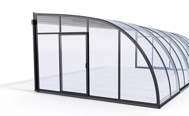 You can choose from several styles of high pool enclosures. If you want to maximize the space under the high enclosure and create a relaxation zone by your pool, CASABLANCA is the perfect choice. For customizable dimensions and configuration, consider the MONACO FUTURE enclosure. If your pool is near a wall, a custom DALLAS wall-mounted enclosure could be the ideal solution. With high pool enclosures, you can also select the color of the frame and the type of its glazing. The MOOVER electric sliding system will make it easier to handle your walk-in pool enclosure.